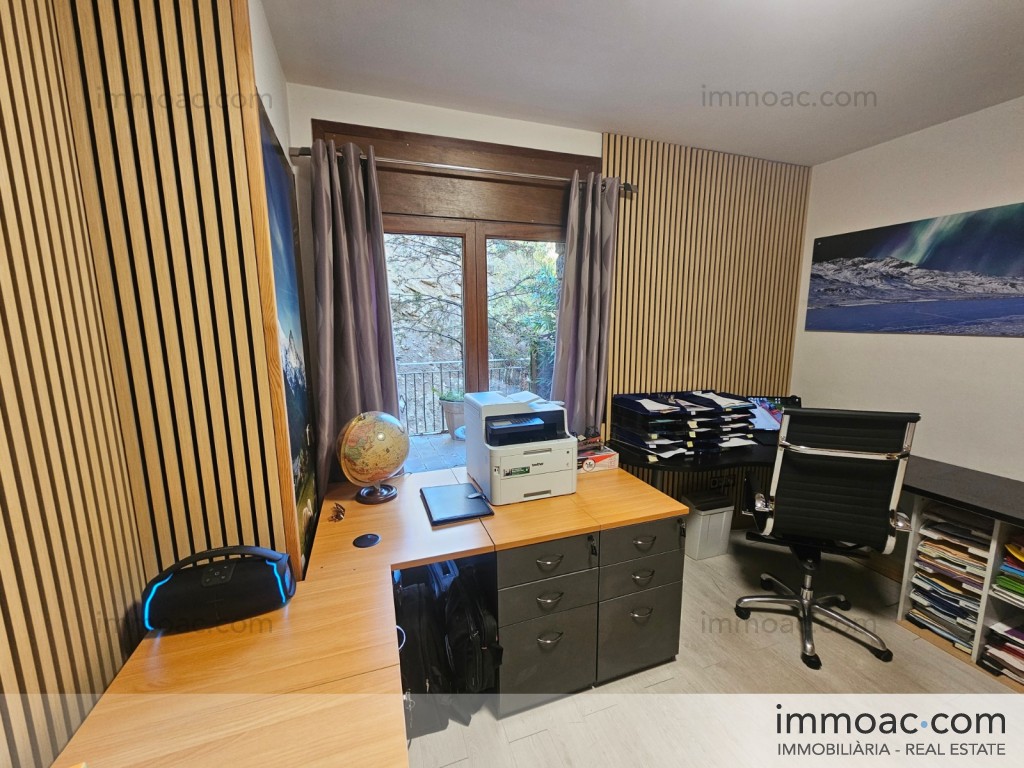 Consta de dues habitacions amb armaris encastats, un ampli saló-menjador amb llar de foc, cuina oberta totalment equipada i una gran zona d’entrada polivalent ideal com a despatx o espai per rebre família i amics. Disposa d’1 bany complet amb dutxa/banyera i jacuzzi. Calefacció elèctrica individual.