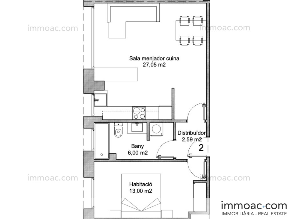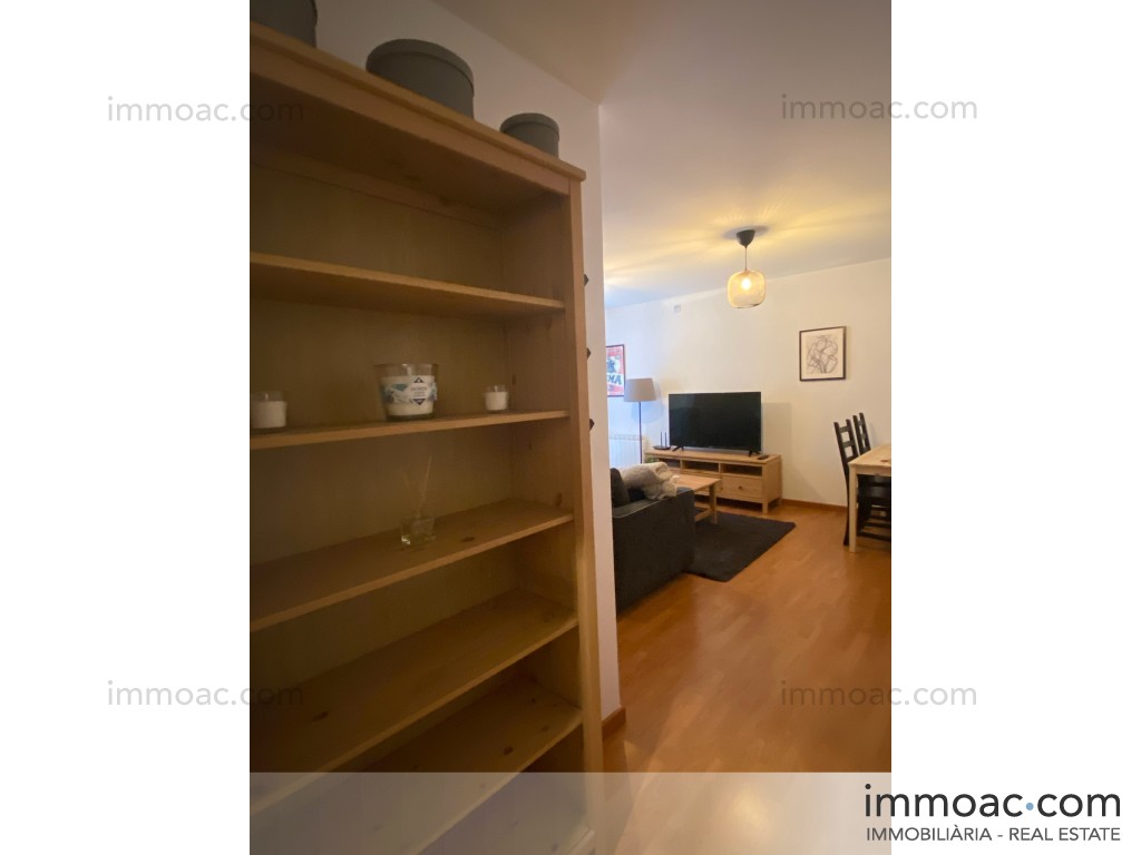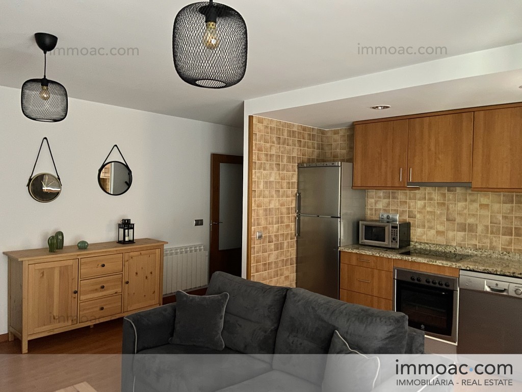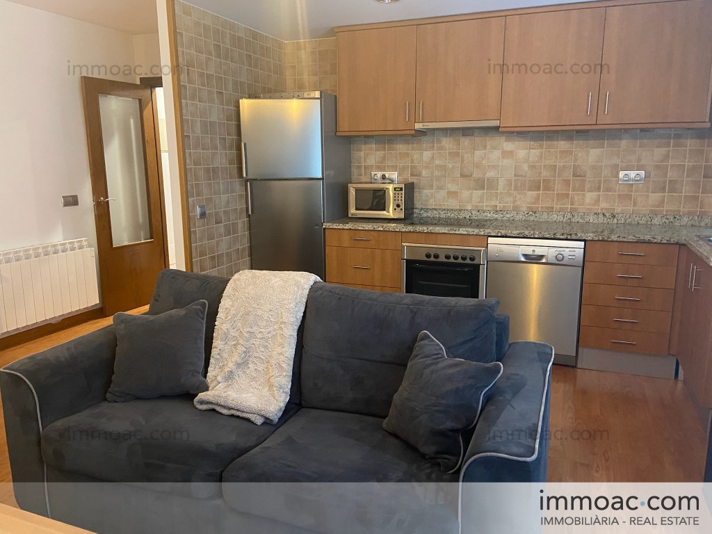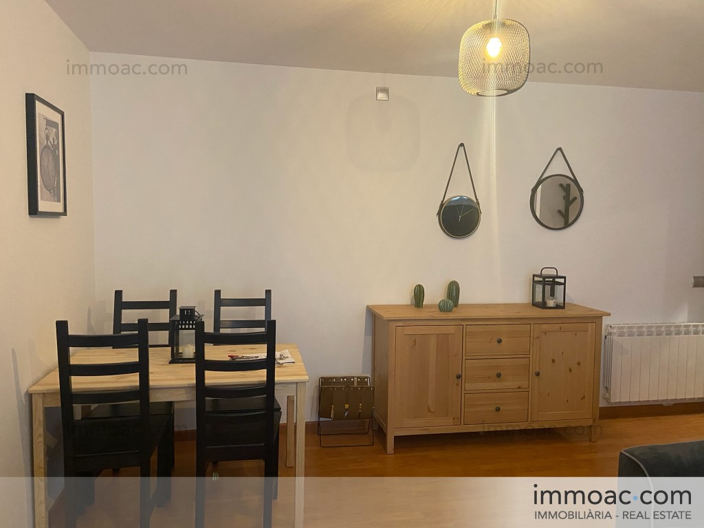 Acollidor apartament de 50 m² totalment moblat i equipat, llest per entrar-hi a viure. Distribuït en sala d'estar-menjador amb cuina americana totalment equipada (nevera, forn, microones, rentavaixelles), una habitació doble àmplia amb llit, tauletes de nit i armari, bany complet amb banyera, i safareig independent. El pis disposa d'estufa de pèl·lets com a calefacció de suport, parquet a tota la vivenda, i està decorat amb gust en estil nòrdic.